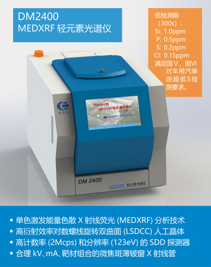 完全依據(jù)ASTM D 7220-12的DM2400S/Cl型MEDXRF微量測(cè)硫氯儀采用單色激發(fā)技術(shù),能快速、準(zhǔn)確、精確地分析燃料中的超低S。是實(shí)驗(yàn)室和工廠進(jìn)行燃料中的超低S分析的完美 ...更多
